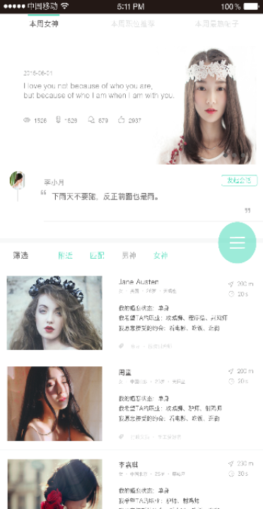 程序缘小伙伴的福音来啦,专为程序缘打造的社交app,你可以发现周边的程序缘小伙伴,也可以发现那些对程序缘心仪的美女。