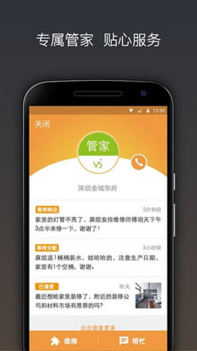 2.房屋:报修、投诉、查询邮包,贴心服务,轻松享用。