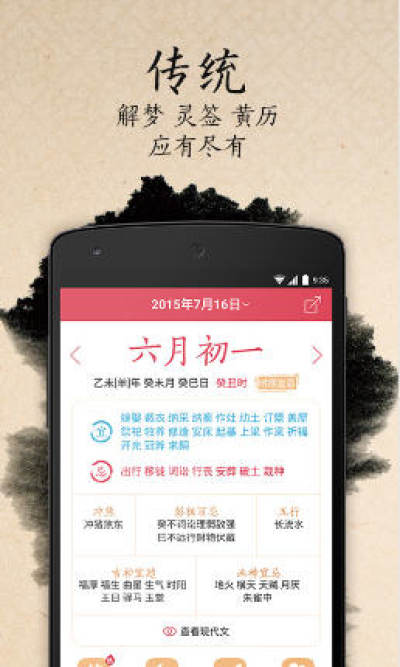 ②界面简洁,不冗余,凸显中国风,做最优质准确的中国日历万年历!