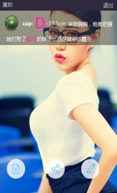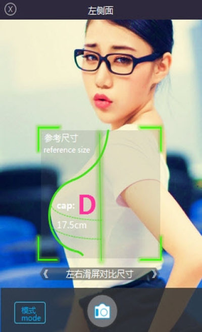 将摄像头对准女神,App将自动对平面突出的坡度部分进行测量,并显示女神的罩杯数和尺寸~好强大的功能呀。