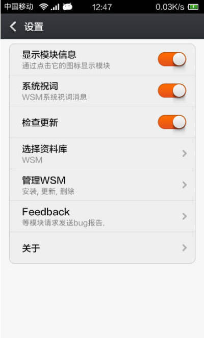 WSM工具箱其实就是MIUI专用Xposed框架 ,我们可以在不修改apk的前提下影响程序运行(修改系统)的框架服务,它可以制作出许多功能强大的模块,且在功能不冲突的情况下同时运作。