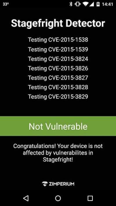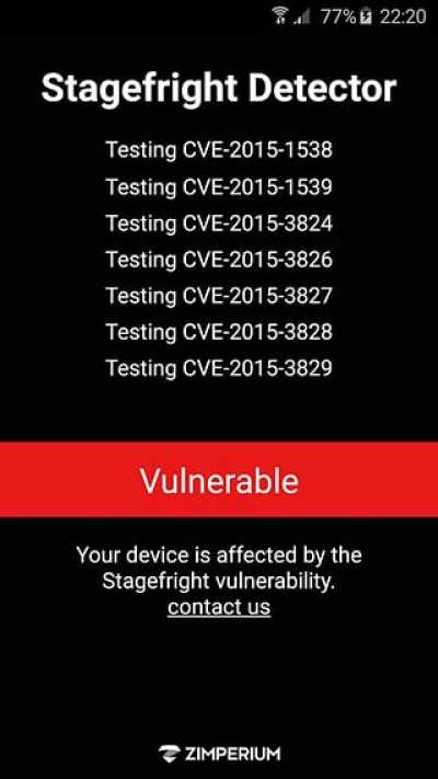 为了测试你的设备是否会受到入侵,Zimperium开发了‘Stagefright检测’应用。这个应用将会告诉你两件主要的事情: