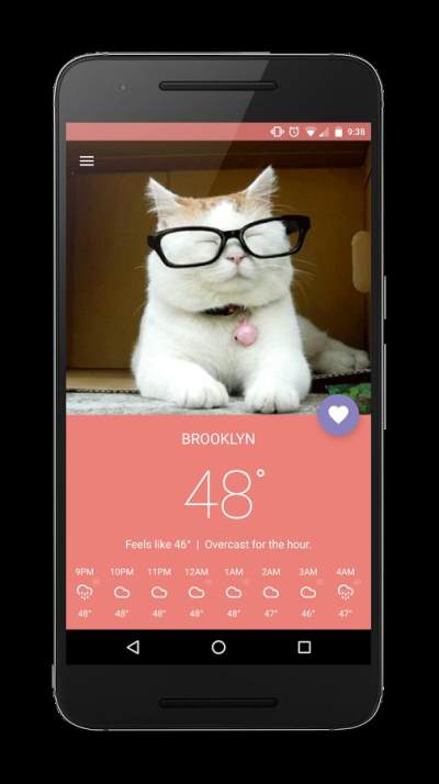 猫咪天气Meowzr是一款卖萌为主预报天气为辅的天气应用,每次打开都会送上一张和猫有关的可爱动图,这样一来看个天气花的流量也很可观。