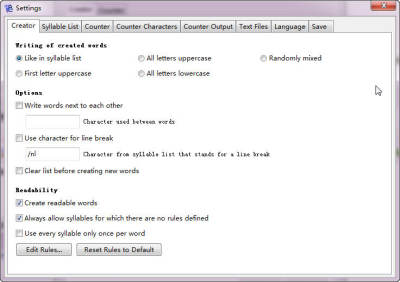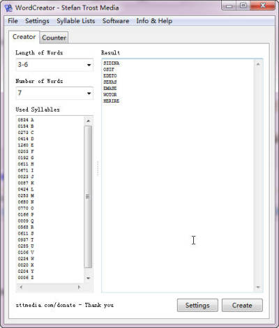 我们还集成了一个计数器字母,字符和音节进入WordCreator。
