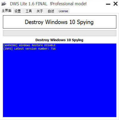 DWS Lite是一款win10系统间谍软件监控工具,现在很多软件都带有监控系统的功能,比如说360,腾讯管家,都是在收集用户资料~所以我们使用DWS Lite来预防监控自己的电脑。