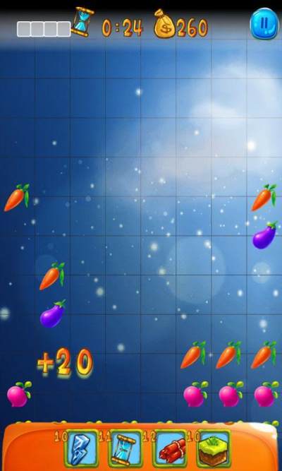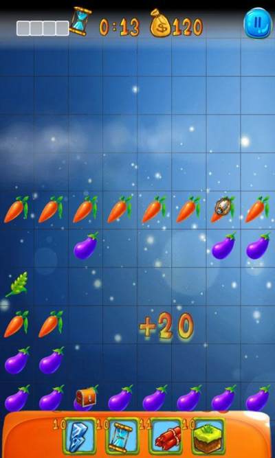 快乐蔬菜王国是一款消除类游戏,指尖一动,即可消灭各色宝石方块。还等什么,各色钻石蠢蠢欲动,等你来消除。 玩家通过消去屏幕左上角给出的形状的宝石,来获取分数或坚持存活至指定时间的目的。