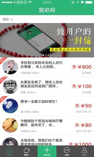 赏必应,一款手机上的生活服务类应用,通过这个软件,你可以悬赏找人办事,或者赚赚外快什么的,非常方便。