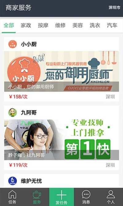 [上门服务]汇聚各类上门服务,如推拿、家政、外卖、厨师、维修、汽车、洗衣等服务,轻松即可享受足不出户的优质服务。
