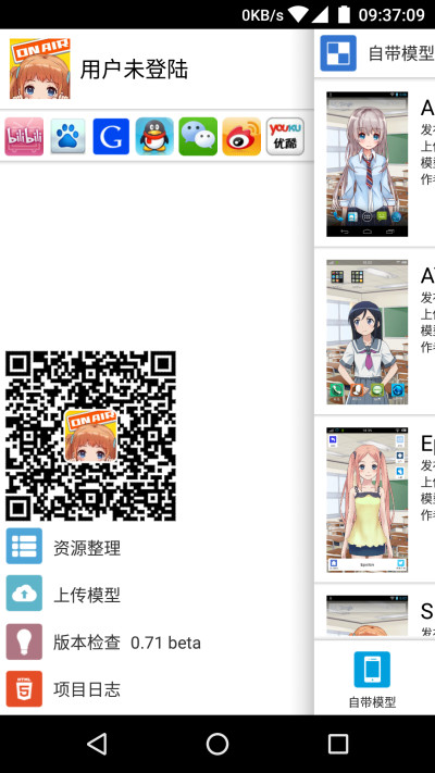 这款Live2d壁纸App除了支持把内置的Live2d妹子设置成壁纸外,还支持第三方的模型导入。可惜的是,由于服务器方面的问题,App暂时不支持线上Live2d模型下载,用户需要预先准备好Live2d的模型文件,放到内置存储中然后导入App。