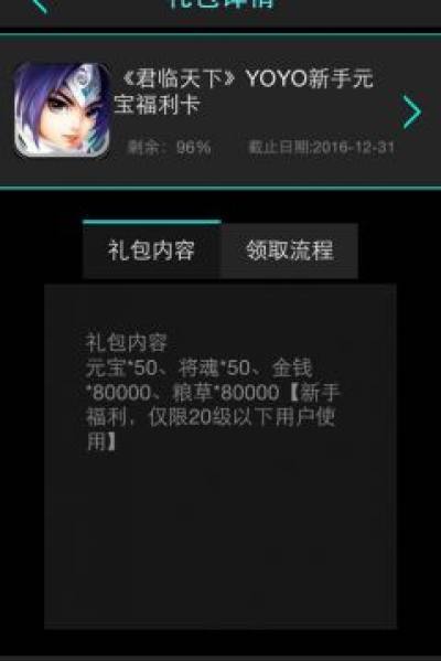 YOYO卡箱是全国最大的手游礼包发放中心。在这里您既可以获得全网最具价值的手游礼 包,钻石、装备、珍惜资源唾手可得;又能先人一步领取最新手游的激活码,享受YOYO独家的优先体验。