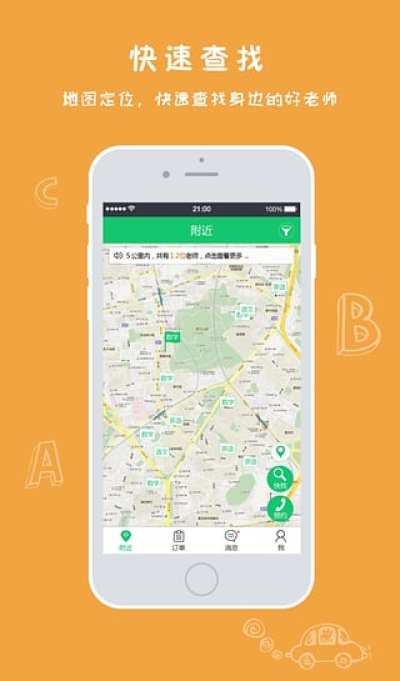 搜到满意的老师,线上实时沟通,实时下单,老师上门服务。