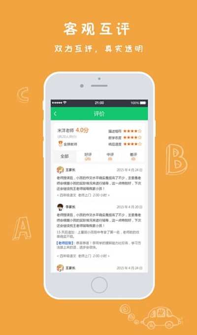 壹家教是深圳市考拉超课科技有限公司推出的移动应用,O2O找好老师学习服务平台,以家长找老师、老师找生源为切入点,提供地理位置搜索、智能匹配、教师详情介绍、记录查询、课堂选择等功能。壹家教开创拼课教育服务模式,个性化定制学习方案,共享优质教学资源,实现教育共享经济,自有线下考拉社区课堂作地面教学服务支撑,搭建全面创新的O2O教育和学习生态圈。壹家教专注于帮助家长、学生更容易的找到合适的老师,帮助老师轻松的找到学生,为广大家长和家教老师搭建一个直接牵手的平台,为家教双方提供一种新型便捷的联系方式。