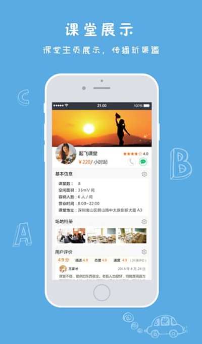 为了避免出现教育资源浪费的情况,考拉社区专门为教育机构们推出了这款壹家教课堂版APP。有了它就再也不用担心出现空教室的情况了。