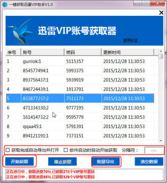 获取完成后即可将帐号批量导出备用(设置好分隔符)