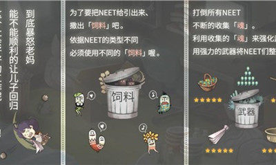1、在房间中散布「饲料」NEET们就会陆续出现;