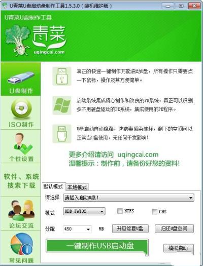 本次U盘启动盘制作工具_U青菜V1.53(专业版),更新一些细节,BUG调整,以便大家可以正常体验使用U盘启动盘制作工具进行u盘装系统操作。