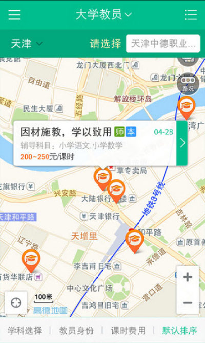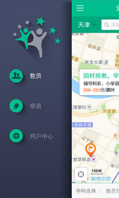 3.最强大的检索系统。用户可以根据学科、地区、经验、身份、更新时间等自由选择所需学员、教员。与此同时,地图展示模块,一方面准确定位附近家教信息,更加方便快捷。另一方面,路线一目了然,方便您的出行。
