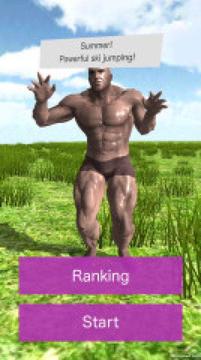 夏日的强力滑翔Summer! Powerful ski jumping!一看图标就知道非同凡响,玩得有点不明所以,玩法就是把一个肌肉男丢得远远的。