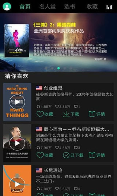 一个读出国际Bigger的APP!选自全球权威热榜书,国际小编每月翻新,主播名嘴倾情精读,15分钟即可获取一本书的精华,横跨视频、音频和文字,中英文双语任选。