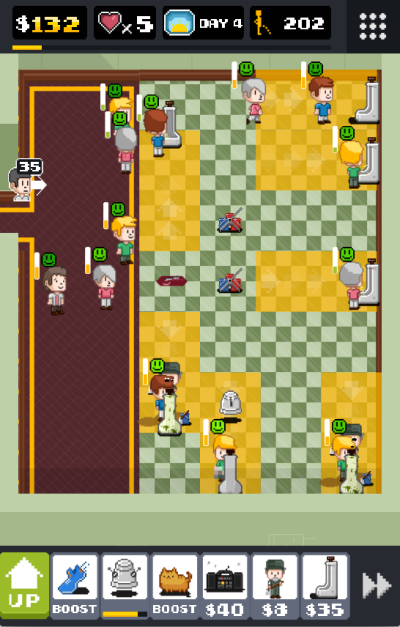 一款来自国外的奇葩经营手游,你将扮演厕所的所长来经营一个公共厕所,来上厕所的人会非常非常多(可能他们国家就这一个厕所)