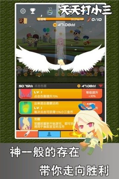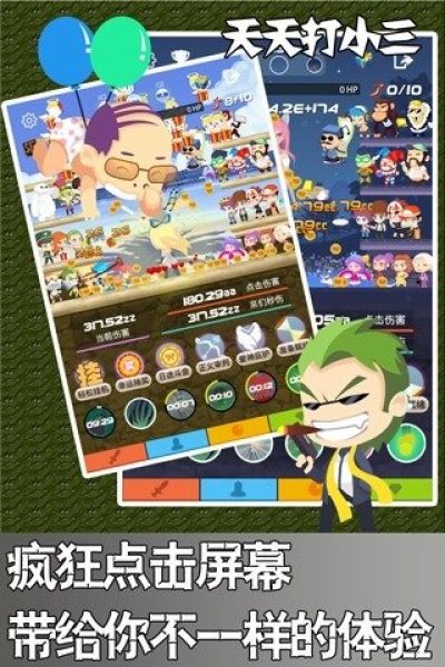 天天打小三是一款充满恶搞和幽默风格的放置点击手游,游戏以人人喊打的小三为主题,玩家通过疯狂戳屏就能殴打小三啦。