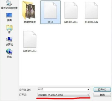 打开PS,文件-打开为-选择已导出好的原贴图文件,文件类型选择D3D/DDS。目测直接打开会无法读取,所以要用“打开为”