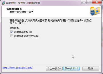 继续操作,选择是否创建桌面及快速启动栏图标,进行下一步操作