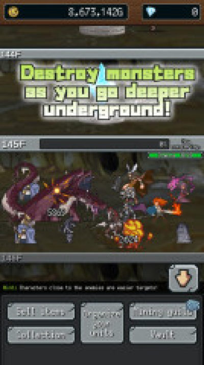 点击地牢Tap Dungeon RPG 又是一款点点点的游戏,看来这种类型要到鼎盛时期了,这次可以配装备,英雄达到层数后送的,死了会自动复,只要你有时间,封印魔鬼已经苏醒,你需要钱去消灭它,不断打败杂鱼,开拓前进的道路。