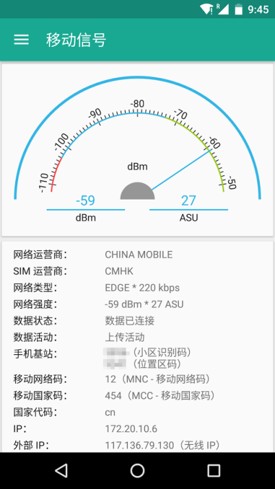 网络运营商,SIM 卡运营商,网络类型,网络强度(以 dbm 和 ASU 表示),数据状态,数据活动,手机的国家代码,设备 ID,手机制式,(内部和外部的)IP 地址,漫游状态等等。