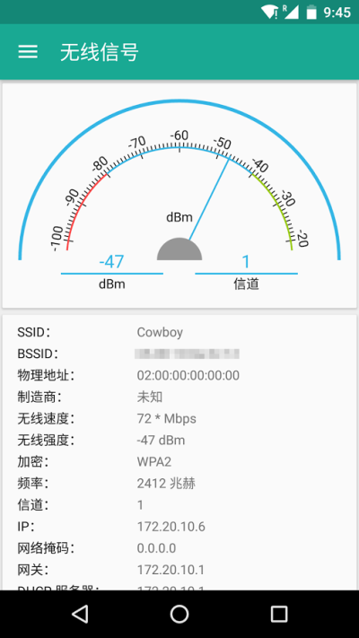 无线名称 (SSID),BSSID,MAC 地址,无线的最高速度,IP 地址,外部 IP 地址,网络频率,网络信道,子网掩码,网关 IP 地址,DHCP 服务器地址,DNS1 和 DNS2 地址等等。