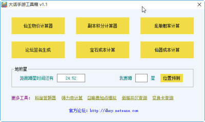 工具包括:仙玉物价换算、副本积分兑换计算、开服表、科举答题