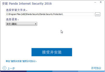 仔细阅读许可协议,如无异议,选择同意;同时选择软件安装目录,并选择安装语音为中文简体,设置完成点击接受并安装
