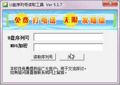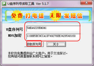点击读取序列号即可快速显示当前U盘序列号及MD5加密