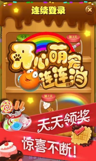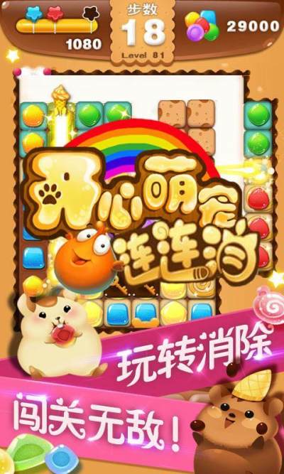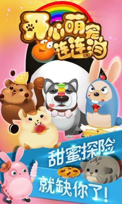 开心萌宠连连消是一款集休闲益智策略为一体的超人气消除游戏,游戏画面清新亮丽,音乐舒缓动听,操作简单,将两个以上相同颜色的萌宠连成一条线即可消除,关卡丰富,挑战多多,不断冲击新的游戏乐趣,可爱无比萌翻天的一大波萌宠正在等着你的到来,让我们携手出发,全民一起卖萌消消乐吧!