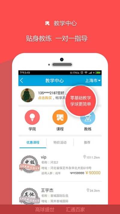 4.教学中心,高尔夫优惠课程重磅推出,注册会员专享,教练可接受虚拟礼物,专业全面的高尔夫教学课程现在开始预约!