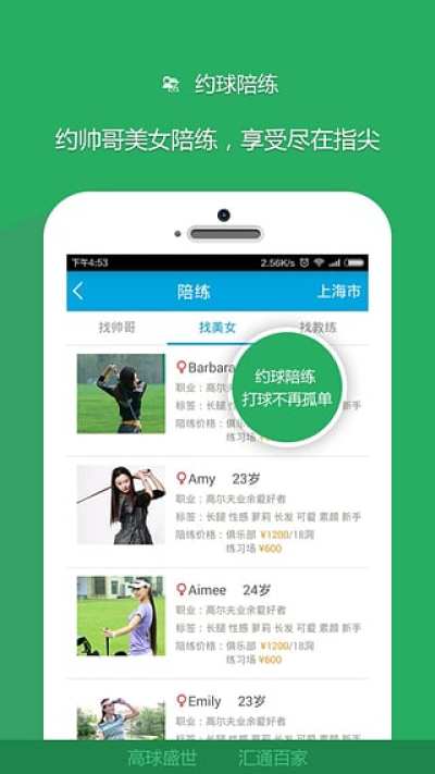 5.约球陪练,快来我们的约球陪练功能,找美女,找帅哥,找教练,你想要的这里都有!