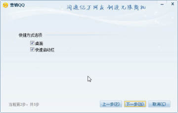 接下来。选择是否安装桌面及快速启动栏快捷方式,进行下一步操作