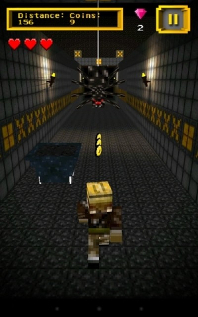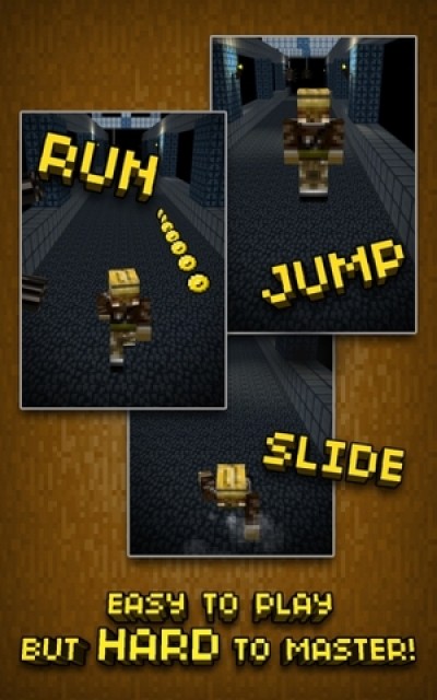 《我的世界跑酷:逃往古庙 Mine Run 3D: Escape 2 Temple》是一款MINECRAFT风格的跑酷游戏。或者可以称这款游戏为MC的神庙逃亡。游戏十分简单,和神庙逃亡一样的操作方式,用重力感应移动人物,上下滑动手指可以跳跃和下铲,左右滑动手指即可转弯,回避路上的障碍并收集金币,看看玩家能获得多少高分。