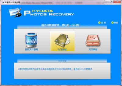宏宇照片恢复向导是一款简单实用的数据恢复工具,可以帮助用户快速恢复误删除、误格式化等造成丢失的照片,支持删除文件恢复、分区恢复、完全恢复等模式,需要的朋友可以下载体验一下。