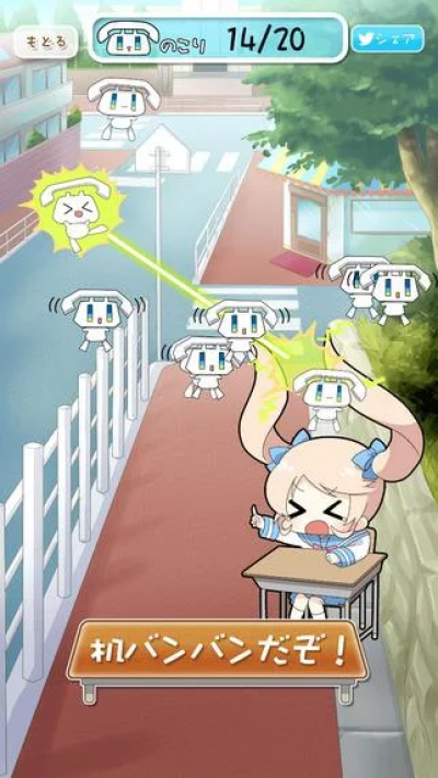 再这样我要敲桌子了是一款二次元风格的美少女养成手游游戏来自日本,游戏中的女主角经常受到可恶的小怪物的骚扰,你需要通过敲击桌子来赶走它们,游戏玩法虽然简单,但是可爱的萌妹和有趣的故事都非常吸引人哦。