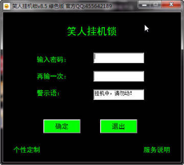 支持挂机锁屏功能:输入密码,再次输入进行确认,输入警示语,点击确定即可,然后打开挂机功能就可以啦