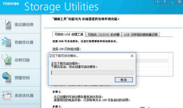 第一次使用这个功能会提示“正在下载可启动模块”,这个过程根据网速不同可能会需要十几分钟,耐心等待吧。记得老版本的东芝Storage Utilities是不用单独下载的,不过那也导致了老工具箱数百兆的体积,而新工具箱现在只要十几兆,下载起来更快,这个辅助工具倒也并不是所有人都会用到的。