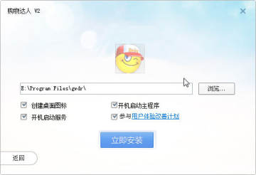 阅读并同意许可协议后,点击自定义安装,选择软件安装目录,并选择是否创建桌面图标、开机启动以及是否参与用户体验改善计划,设置完成点击立即安装即可耐心等待安装成功