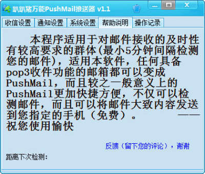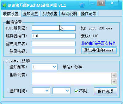 使用本软件,任何具有POP3收件功能的邮箱都将编程pushmail