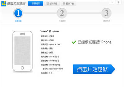 只需按下开始越狱,后面的工作请交给越狱精灵