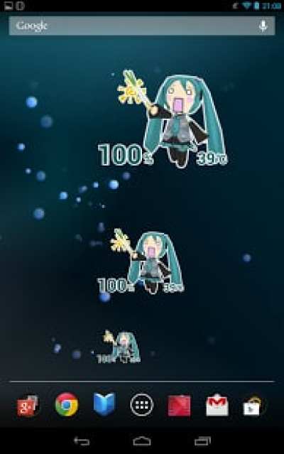 小初音电池,一款萌萌哒的显示电池剩余电量的应用,需要添加“小初音电池”到主页面通过设置添加小工具安装,有需要的朋友可以下载使用。