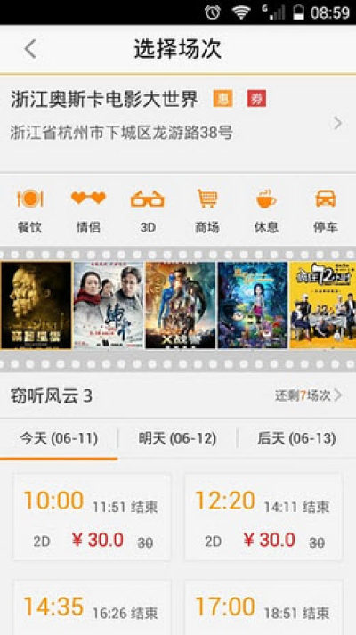 特殊场次:所谓特殊场次目前包括特殊厅(首映、见面会)、情侣座、vip厅、巨幕厅、4D厅、MAX厅等特殊影厅。