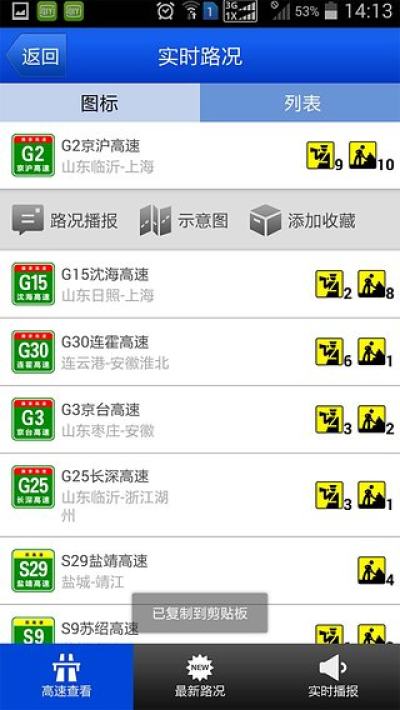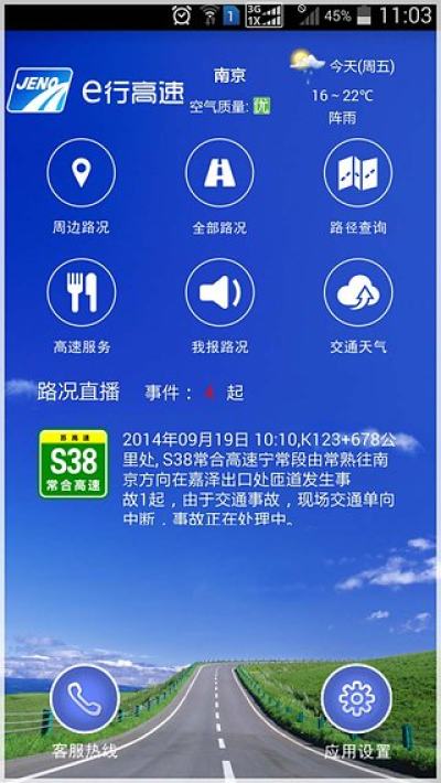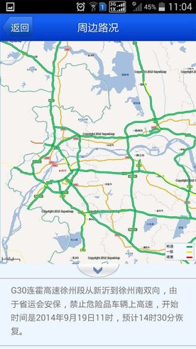 软件展示江苏省省内的交通态势、突发事件、施工管制等多种信息内容;