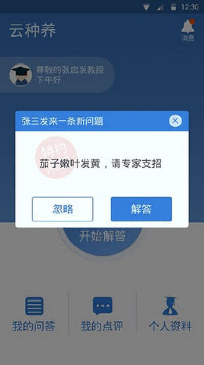 这是云种养专家端,农业方面的专家可以通过它来在线回答农民朋友们提出的各种农业种植问题,让自己所学的专业知识能真正的做到学以致用,感兴趣的朋友快加入进来吧!