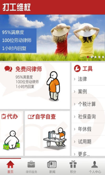 还有不到一个月的时间就要到春节了,新闻上又不是的开始出现打工讨薪的信息。为了帮助打工者们更好的维护自己的权利,小编特意找来了这款“打工维权”APP给大家,让你可以了解更多的相关法律知识。